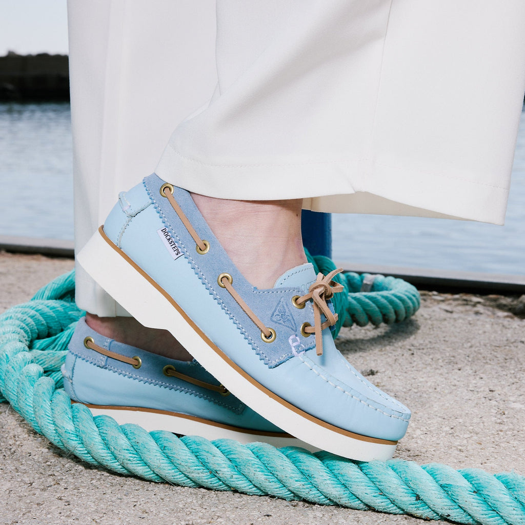 Versatile, contemporary and modern, Loma will be the most popular women's boat shoe of the season. The 1500 boat model is characterised by the play of colour given by the two sides of suede and leather. The increased volumes and lightness of the EVA sole compared to traditional boats make it perfect for everyday life, hot summer days and walks in the city or by the sea.