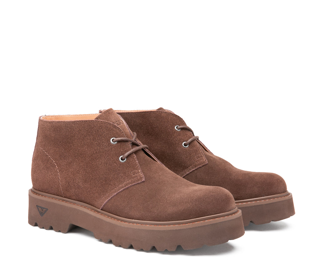 Elegant with a strong character. Made of dark brown suede leather, a perfect choice for those who like to stand out in style without excess. The classic design with front lacing is revisited with a modern twist. Versatile and refined, this shoe is ideal for completing formal or casual chic outfits with a touch of understated elegance.