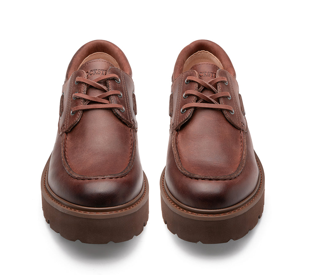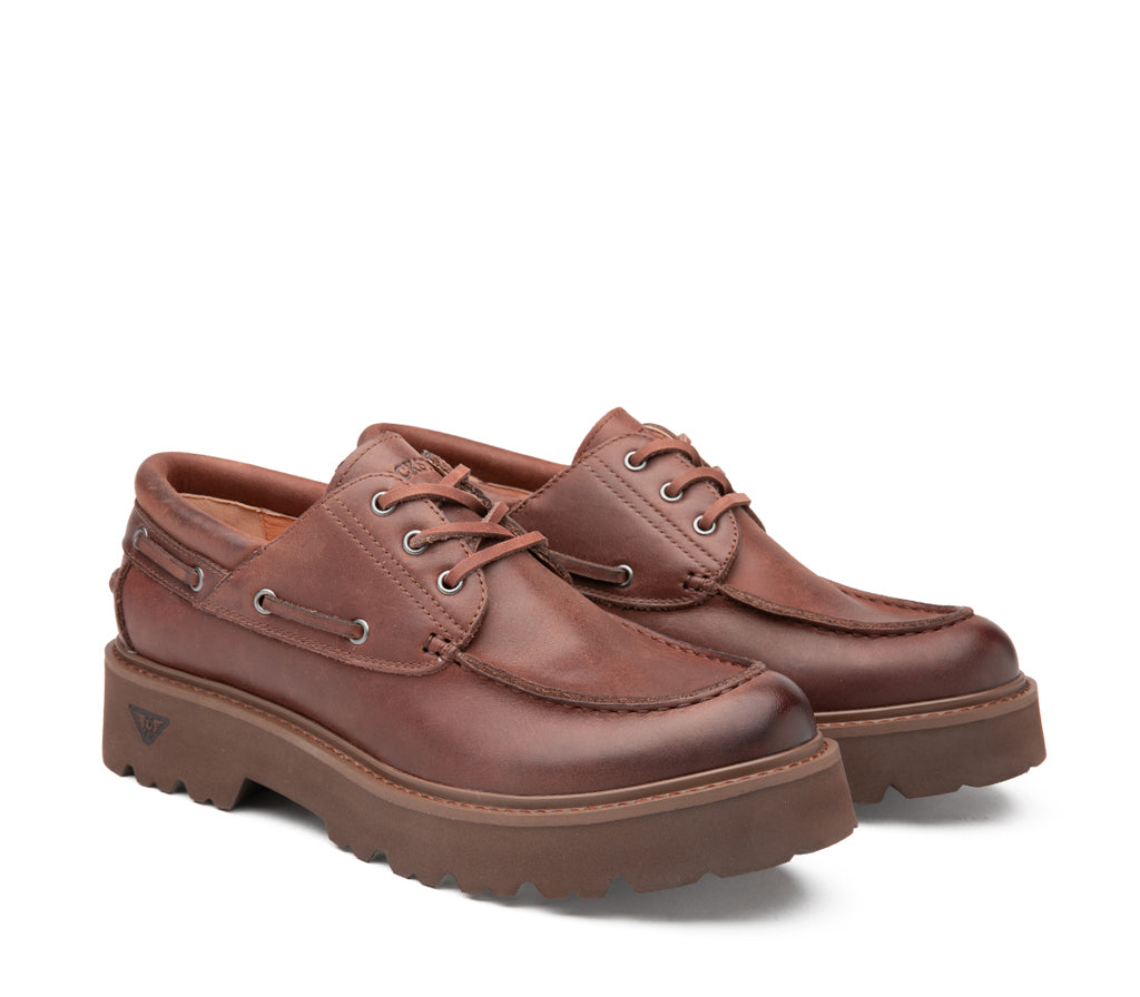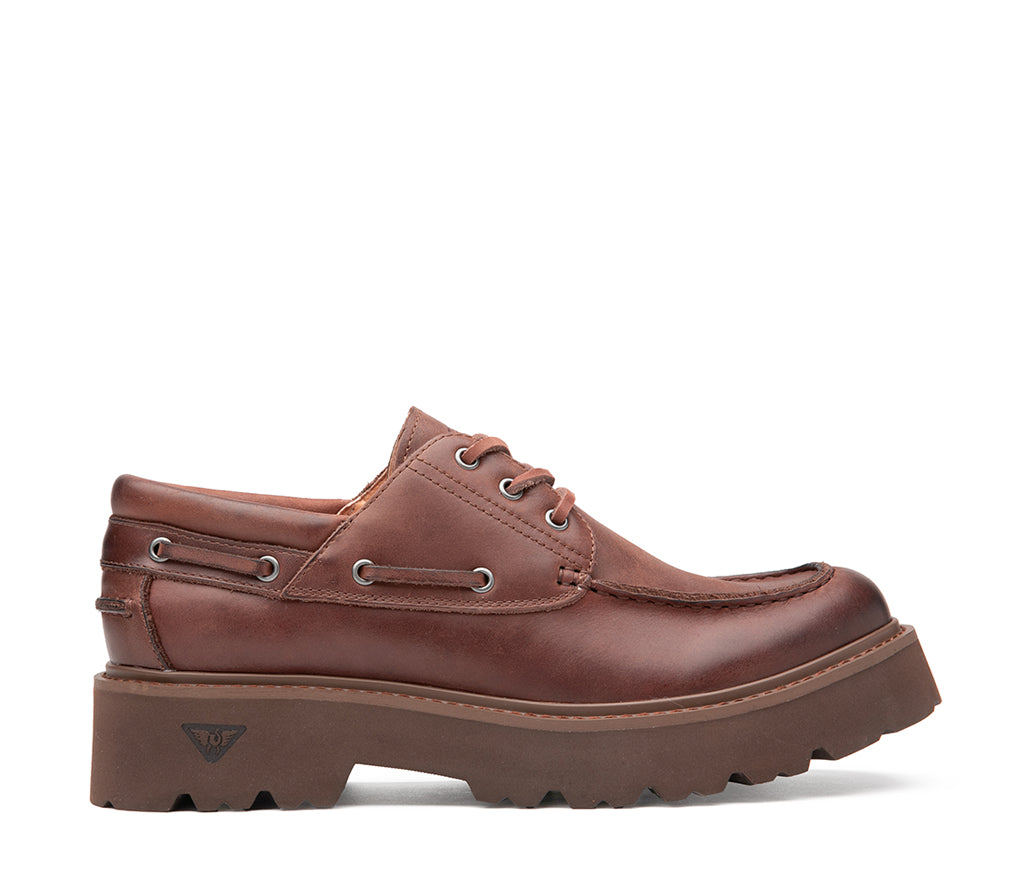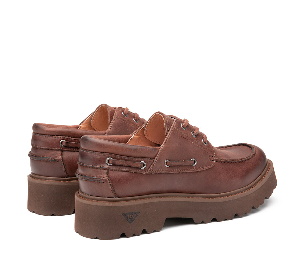 Metropolitan soul boat shoe in brown, stylish and versatile. The lug sole and mid-heel provide stability and comfort, while the contemporary design maintains a refined aesthetic. Ideal for those who desire a well-balanced formal-casual style where understated style meets distinctive personality.