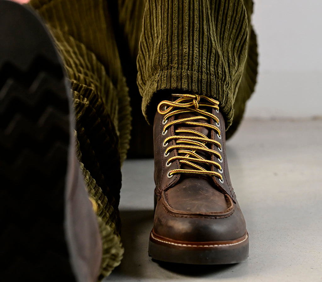 A lace-up boot from the Oakland line of Docksteps is made of leather and a lightweight EVA rubber notched sole for optimum stability. A flexible and comfortable shoe that will enhance your mountain and city look